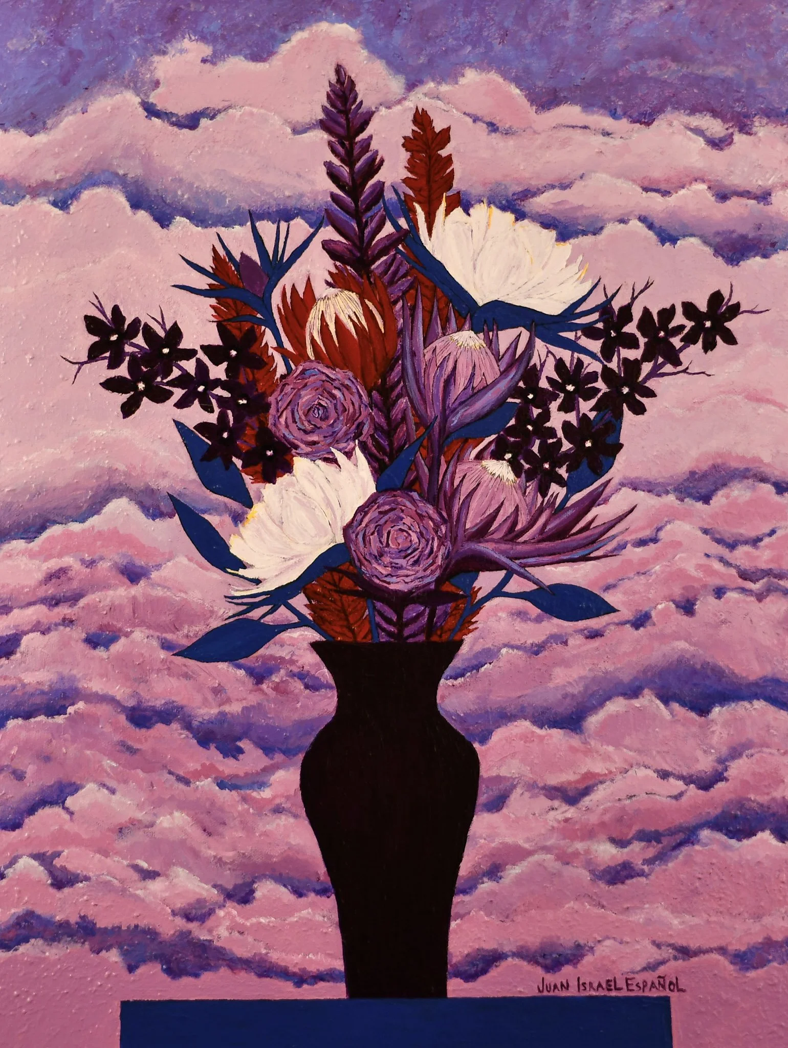 Mixed bouquet against the sky. Acrylic paint on canvas. 18”x24”.
