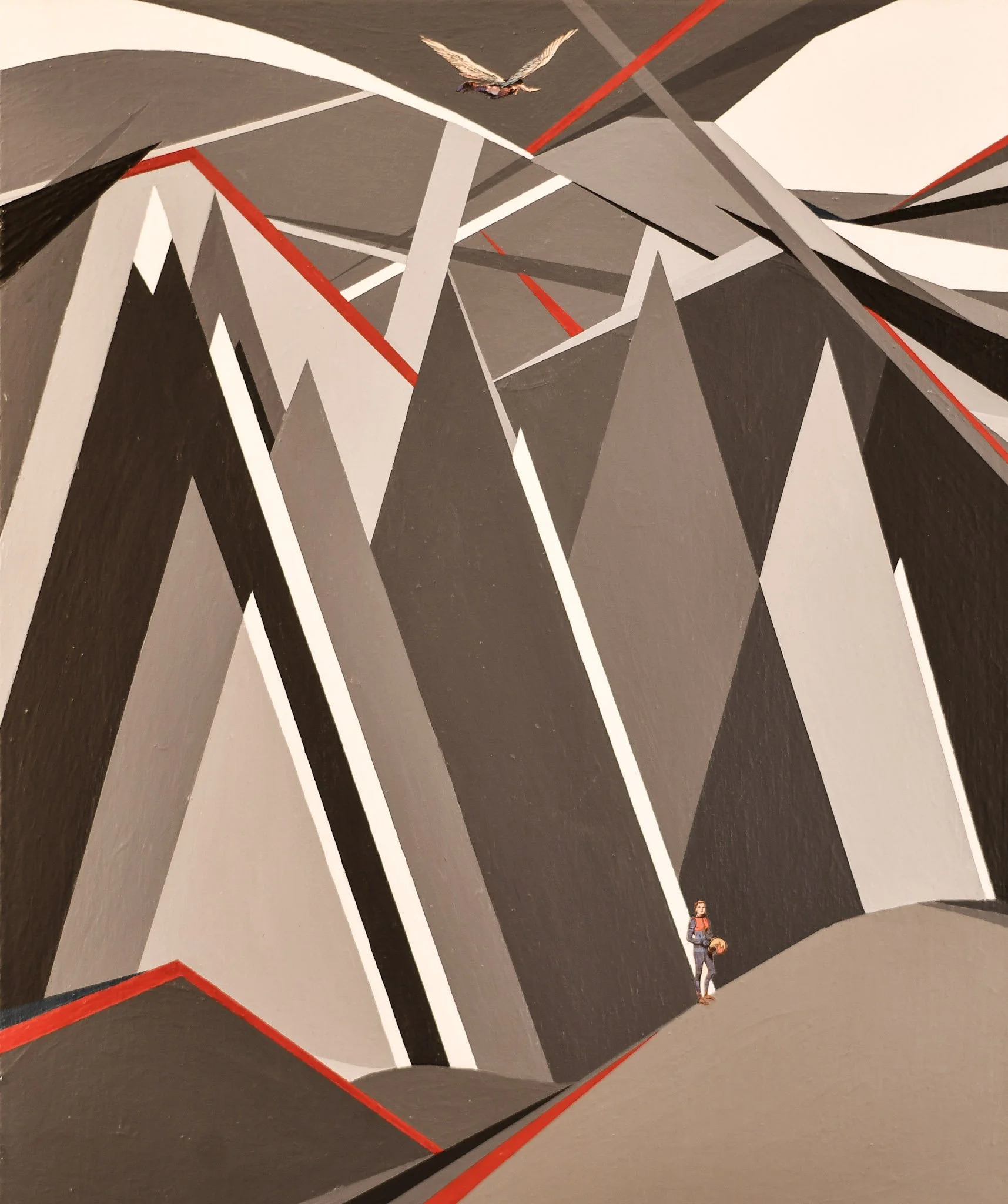 Flight. Mixed media. Acrylic and collage on canvas. 20”x24”. Private Collection.