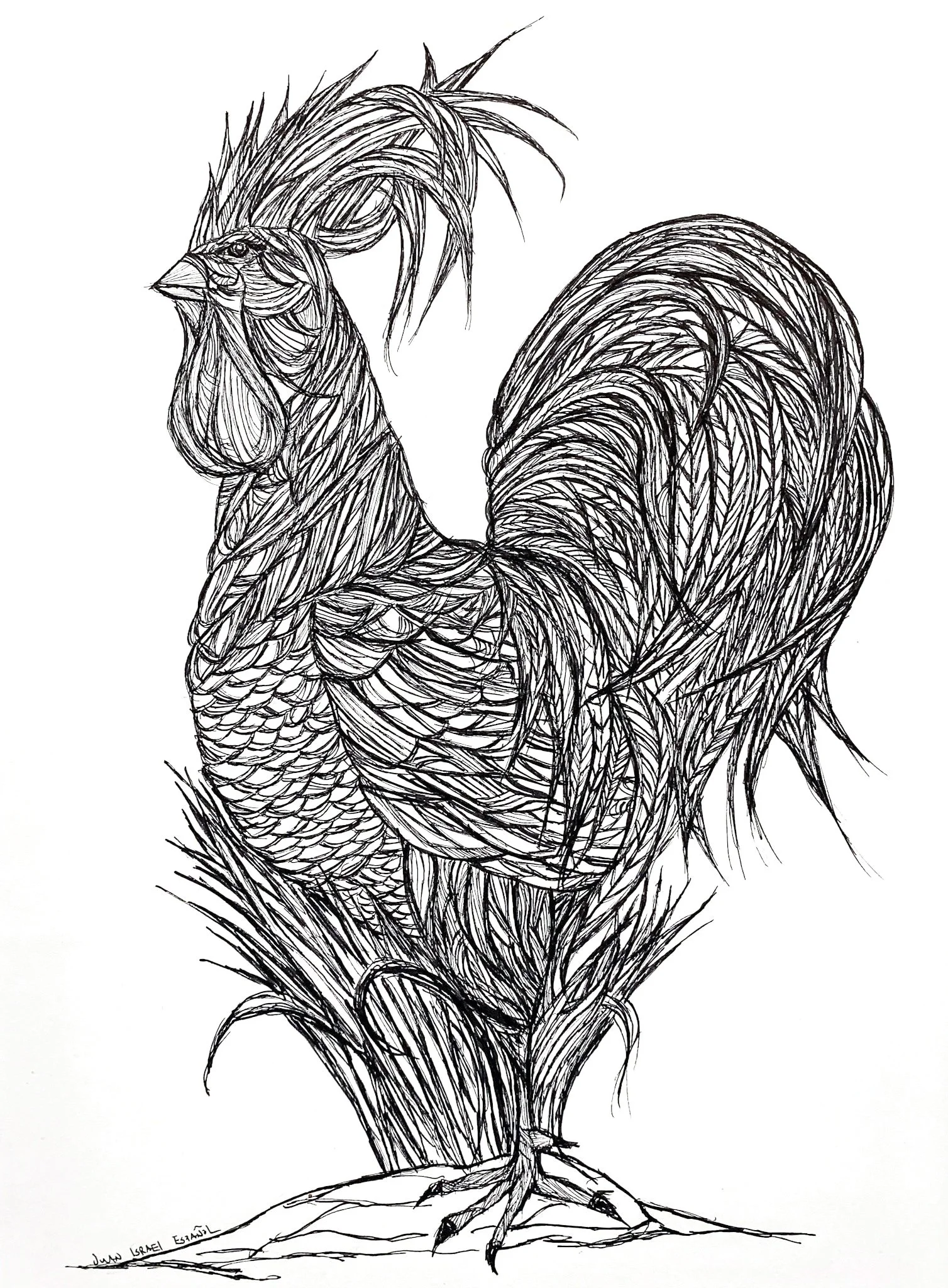 Rooster. Ink on Bristol Paper. 8.5”x11.5”.