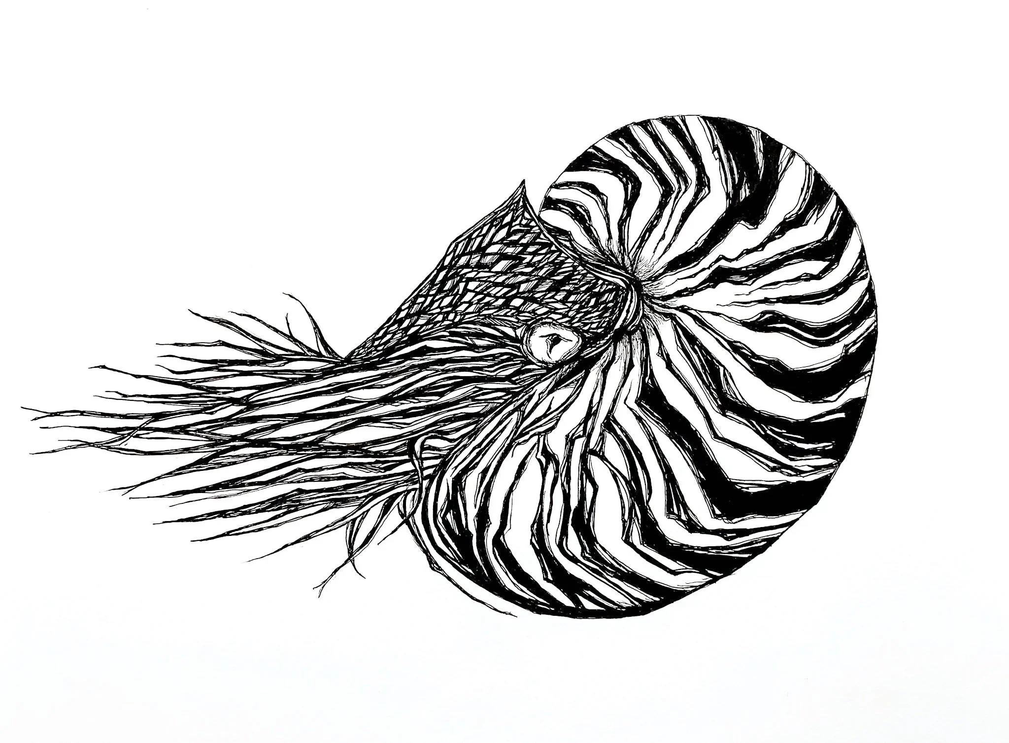 Chambered Nautilus. Ink on Bristol Paper. 8.5”x11.5”.