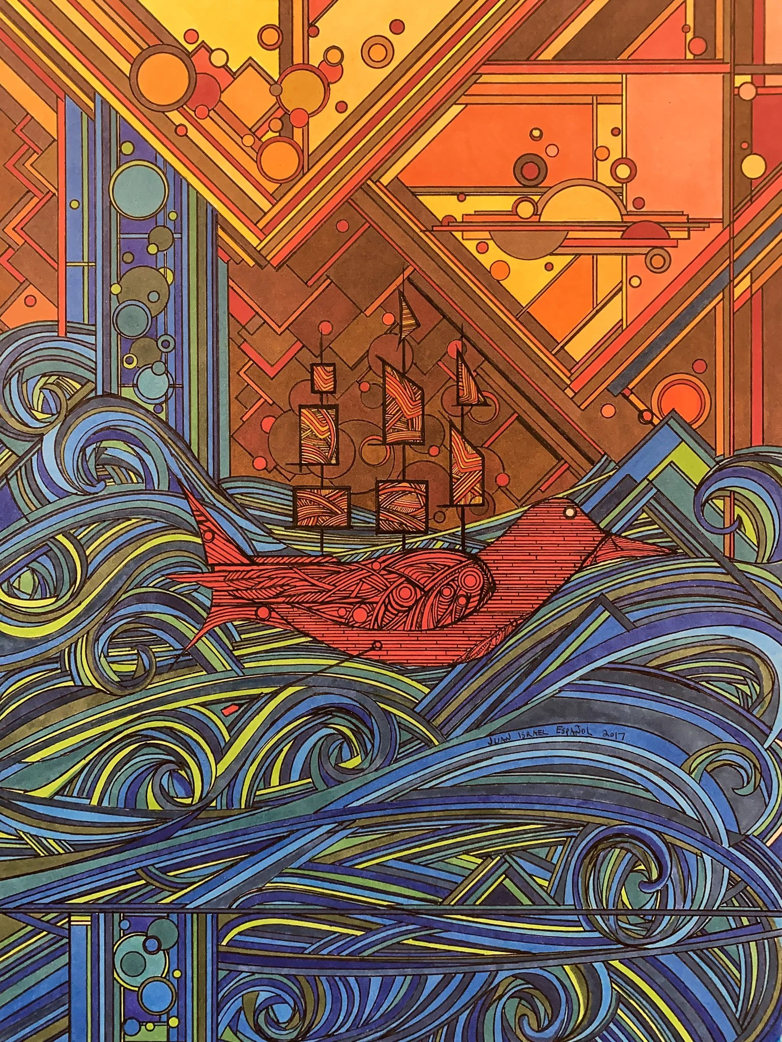 Ship at Seas. Ink on Bristol Paper. 8.5”x11”.